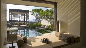 is one of the most visually-striking hotels in the world. Villas are vast, voguish and come with private swimming pools while facilities include a spectacular 50-metre infinity pool, a glamorous spa, and two tip-top restaurants. On arrival, the first thing that almost every guest does is whip out their smart phones and snap the hotel’s extraordinary modernist architecture. Bright white blocks which house the reception, restaurants and spa, are set amongst jigsaw-like paths and water gardens, with a show-stopping wooden building cantilevered out over the cliffs. The hotel’s 30 private villas are stunning in their simplicity, all creamy walls, clean lines and vast windows softened with giant day beds and pretty batik cushions. Bathrooms are designed for pampering with indoor and outdoor showers, luxuriously deep tubs and a range of lush locally-made amenities which include everything from purifying face masks to softening lip balms. In addition, each villa comes with its own butler, swimming pool and chic sunbathing cabana making them almost impossible to leave.